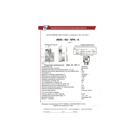 Характеристики ИВ40-NO-NPN-K(НКУ)
