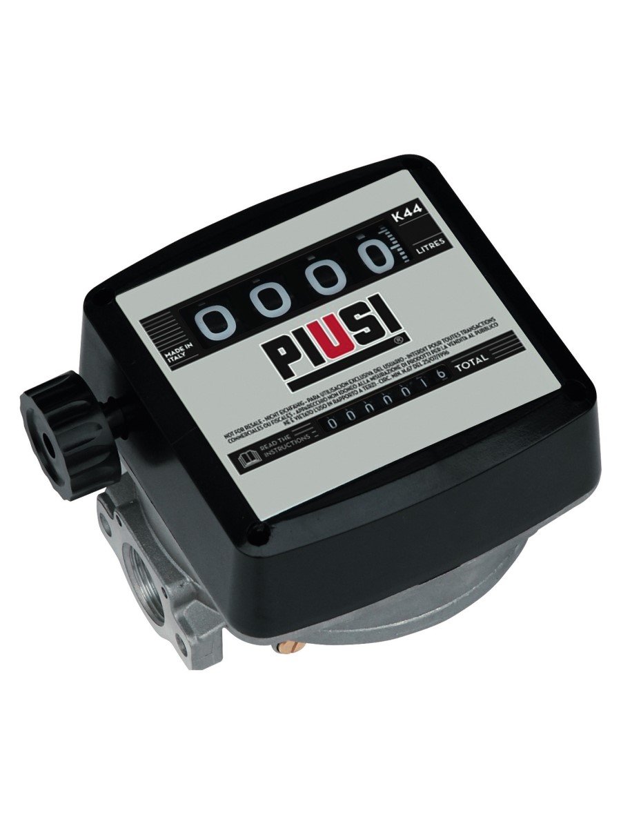 K44 ver. D масло - 4-х разрядный механический счетчик отпуска масла, 20-120 л/мин. Версия D - направление потока слева направо. Разработанный для измерения точного количества отпускаемого количества масла. Предназначен для некоммерческого использования. Недорогой, надежный расходометр легко устанавливается и калибруется прямо на рабочем месте. Благодая низкому сопротивлению потоку подходит также для использования на самотечных линиях. Модель K33: 4-разрядая промежуточная цифра (максимум 9999 литров), 7-разрядная общая цифра для суммарного счетчика. Рабочее давление 10 бар. Разъем 1" BSP.
