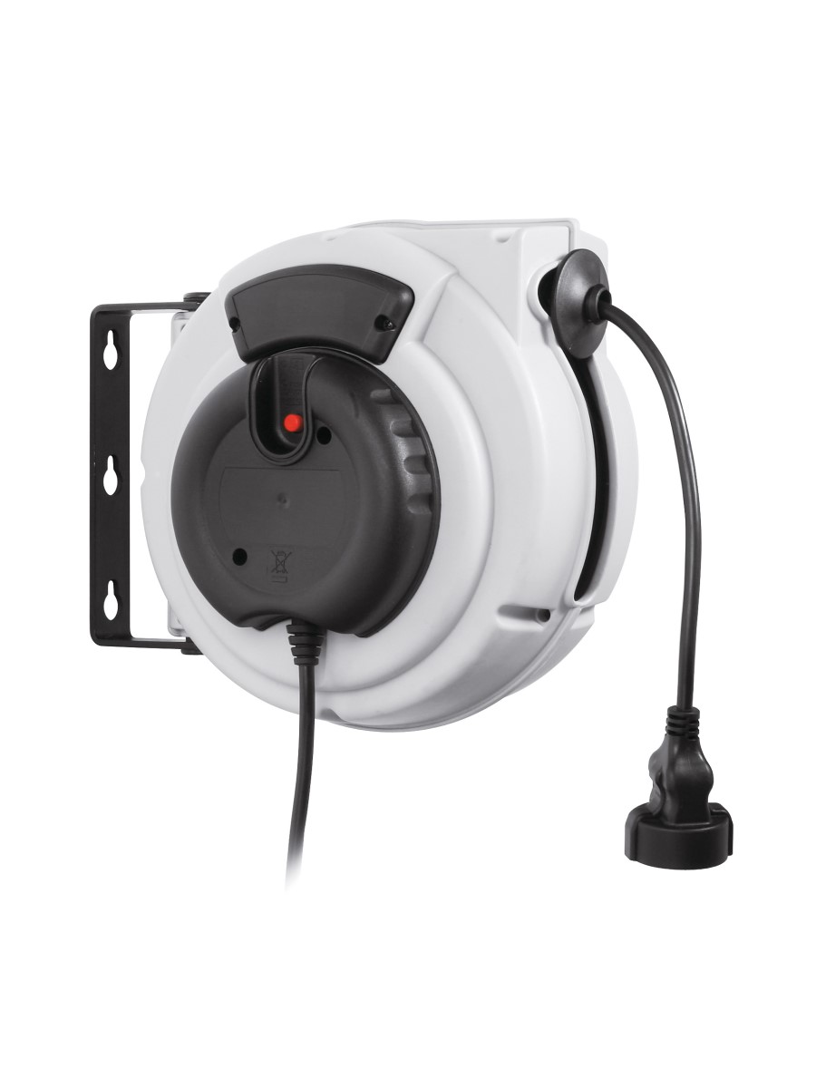 Компактная катушка с кабелем, с прочным корпусом из термопласта. При компактных размерах имеет широкое выходное отверстие для удобного вытягивания кабеля без трения. Все катушки включают поворотный кронштейн, кабель, указанный для каждой модели и максимальный автоматический выключатель. Питание 230В, 50Гц. Включает 15-метровый кабель H05VV-F 3×1,5 мм2, 230В - 50 Гц. Макс .мощность: 800 Вт с намотанным кабелем и 2000 Вт с полностью размотанным кабелем