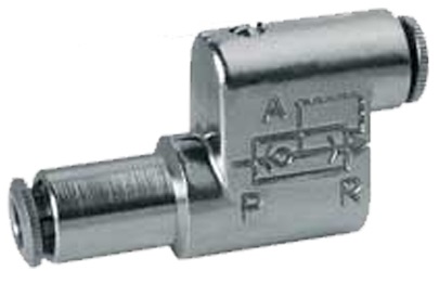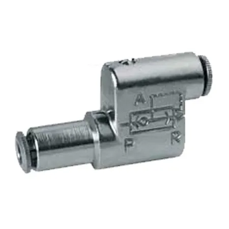 Мод. VSO 425-M5 и VSO 426-04 разработаны специально для установки на электромагнитных распределителях со встроенным быстроразъемным соединением ø4 мм или для навесной установки в разрыв пневматического трубопровода ø 4 мм. Воздух, поступающий во входящее отверстие (1) проходит через отверстие (2), при этом выхлоп (3) выходит через отверстия, расположенные на боковой поверхности клапана.