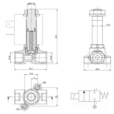3/2 распределитель прямого действия с электромагнитным управлением.
