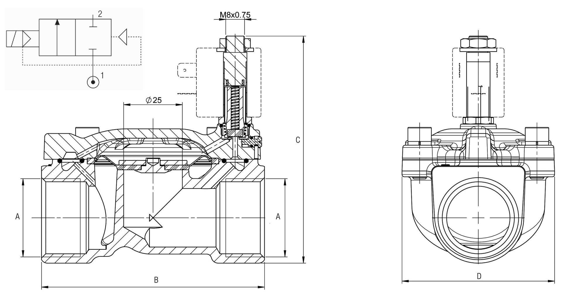 3/2 распределитель с электромагнитным управлением и пилотным каскадом.