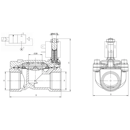 3/2 распределитель с электромагнитным управлением и пилотным каскадом.