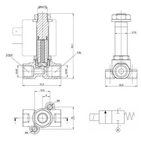 3/2 распределитель прямого действия с электромагнитным управлением.