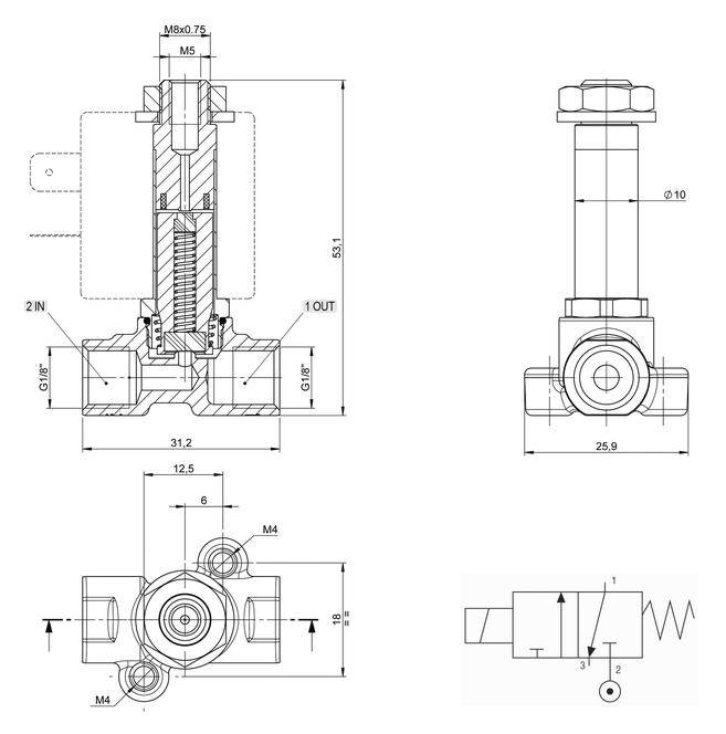 3/2 распределитель прямого действия с электромагнитным управлением.