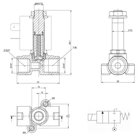 Фактически, пилот является миниатюрным клапаном-посредником, переключающимся от незначительного усилия исполнительного элемента, и далее направляющим поток рабочей среды на переключение основного клапана. Это позволяет управлять клапанами больших размеров относительно маломощными катушками и небольшими механическими органами управления.