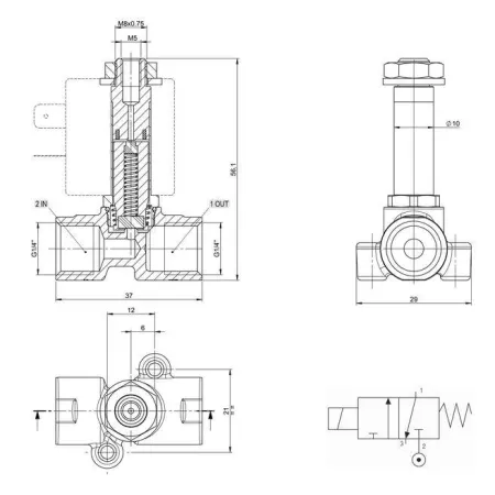 3/2 распределитель прямого действия с электромагнитным управлением.