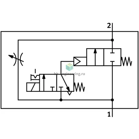 3/2 распределитель с электромагнитным управлением и пилотным каскадом.