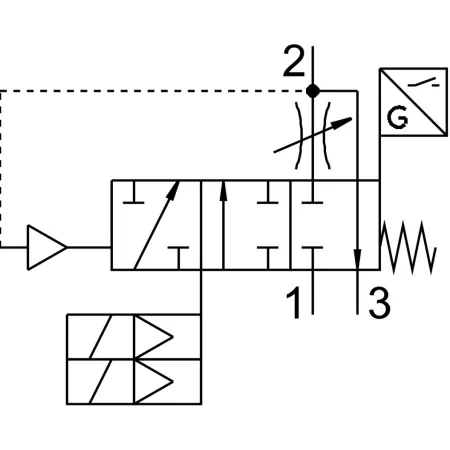 3/2 распределитель с электромагнитным управлением и пилотным каскадом.