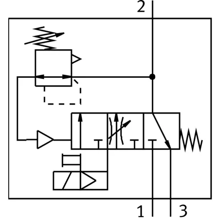 3/2 распределитель с электромагнитным управлением и пилотным каскадом.