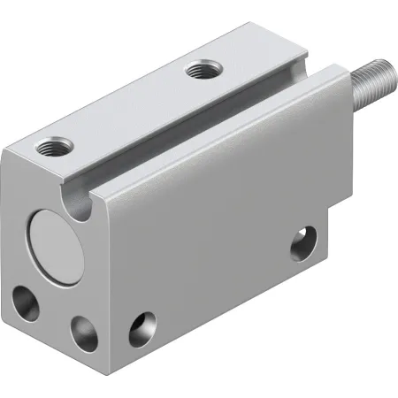 Цилиндры одностороннего действия имеют только одно отверстие пневматического подключения. Движение под действием сжатого воздуха осуществляется в одну сторону, возврат осуществляется при помощи пружины. Таким образом, для управления таким цилиндром требуется всего один пневматический сигнал.