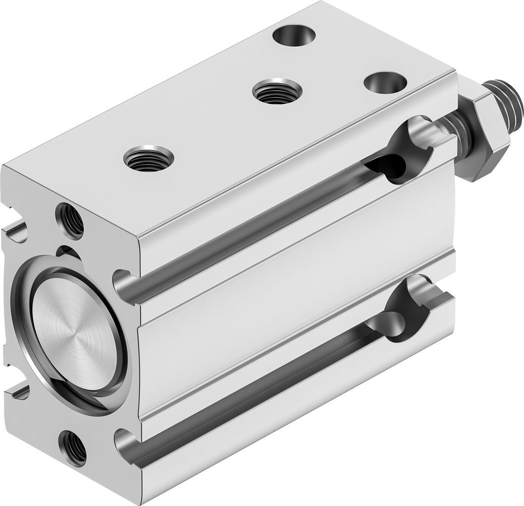Цилиндры одностороннего действия имеют только одно отверстие пневматического подключения. Движение под действием сжатого воздуха осуществляется в одну сторону, возврат осуществляется при помощи пружины. Таким образом, для управления таким цилиндром требуется всего один пневматический сигнал.