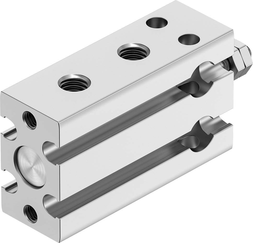 Цилиндры двустороннего действия имеют два отверстия для подвода сжатого воздуха – для выдвижения и втягивания штока соответственно.