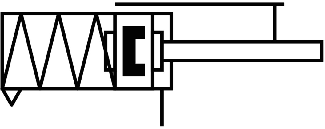 Пневмоцилиндр с пружиной в штоковой полости (на изображении выше) и нормально втянутым штоком называется толкающим. При расположении пружины в противоположной, поршневой полости, шток будет нормально выдвинутым, а пневмоцилиндр – тянущим.