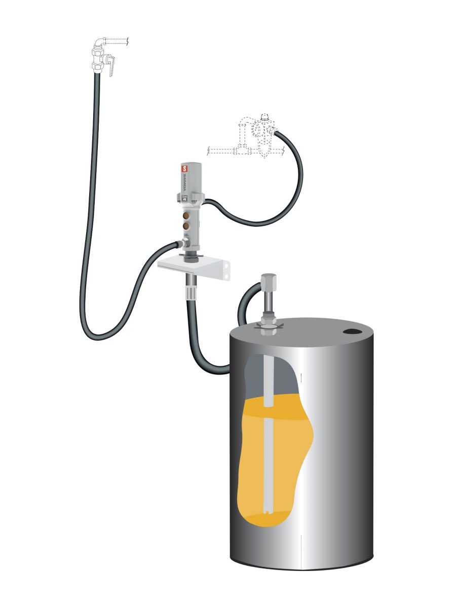 Комплект для откачки масла из бочки 205 л с коэффициентом сжатия 5:1 с монтажом на стену. Настенный насос и комплект для перекачки позволяет быстро и без утечек заменить бочку. Включает: