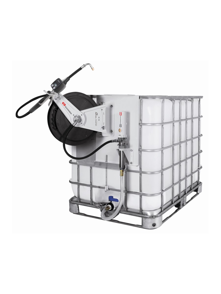 Комплект с насосом для масла 3:1 с катушкой для контейнеров 1000 л, монтаж сбоку.