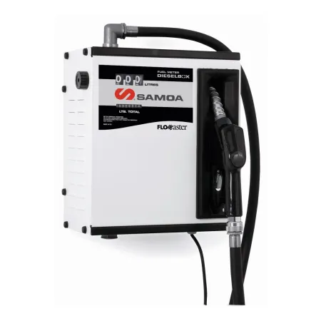Насос с производительностью 70 л/мин серии POLARIS в шкафу для для монтажа на стену или бак. Комплект включает насос для перекачки дизельного топлива 230 В, 50 Гц, кабель 1,8 м с вилкой, шкаф с держателем пистолета с автоматическим переключателем вкл/выкл, подающий шланг 4 м, автоматический пистолет и трехразрядный счетчик с шарнирным угловым патрубком 90°, который прифланцовывается к