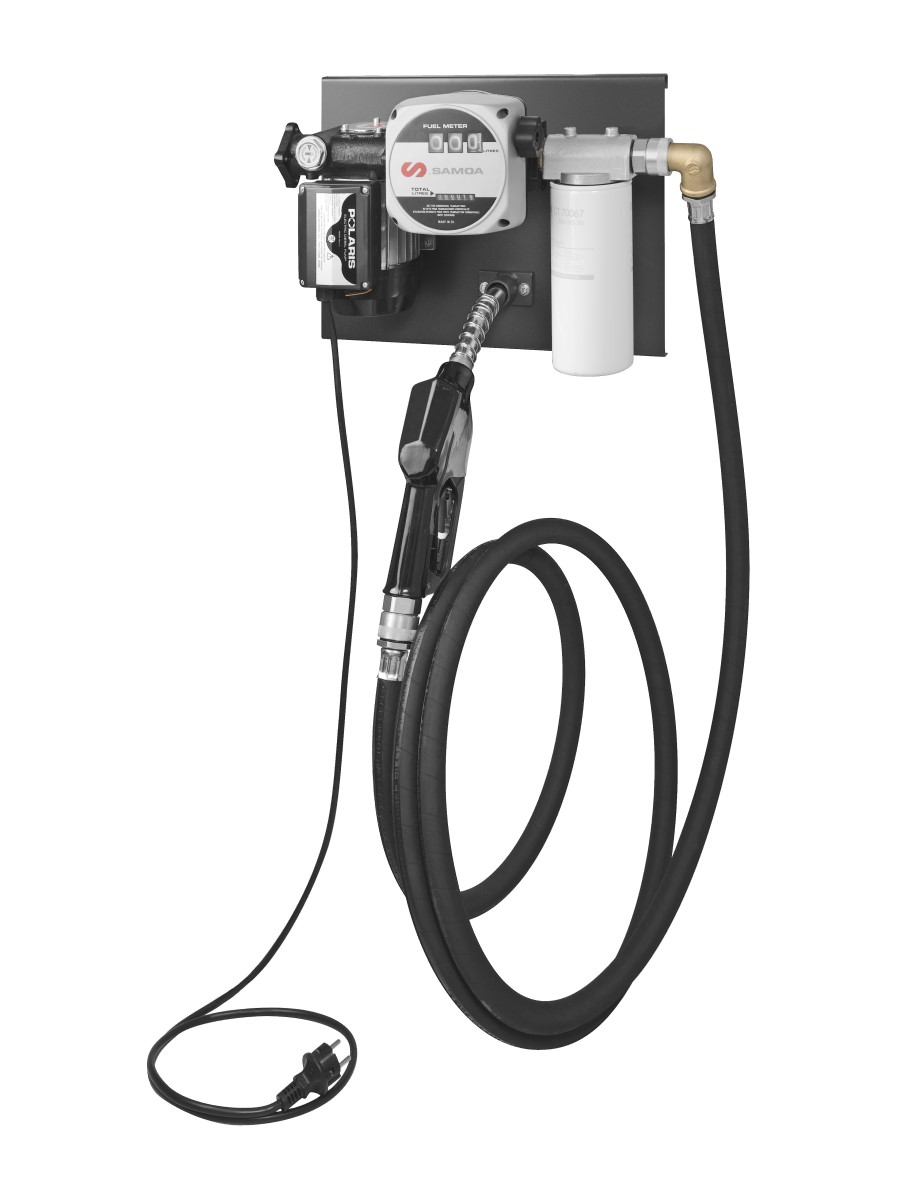 Насос POLARIS производительностью 70 л/мин с крепежной пластиной для монтажа на стену или бак. Комплект включает насос для перекачки дизельного топлива 230 В~, 50 Гц с кабелем 1,8 м, крепежную пластину, подающий шланг 4 м, алюминиевую насадку и трехразрядный счетчик (680300) с шарнирным угловым патрубком 90º и фильтром, который прифланцовывается к насосу. Соединение на входе жидкости 1" BSP (F). Счетчик предназначен только для некоммерческого применения.