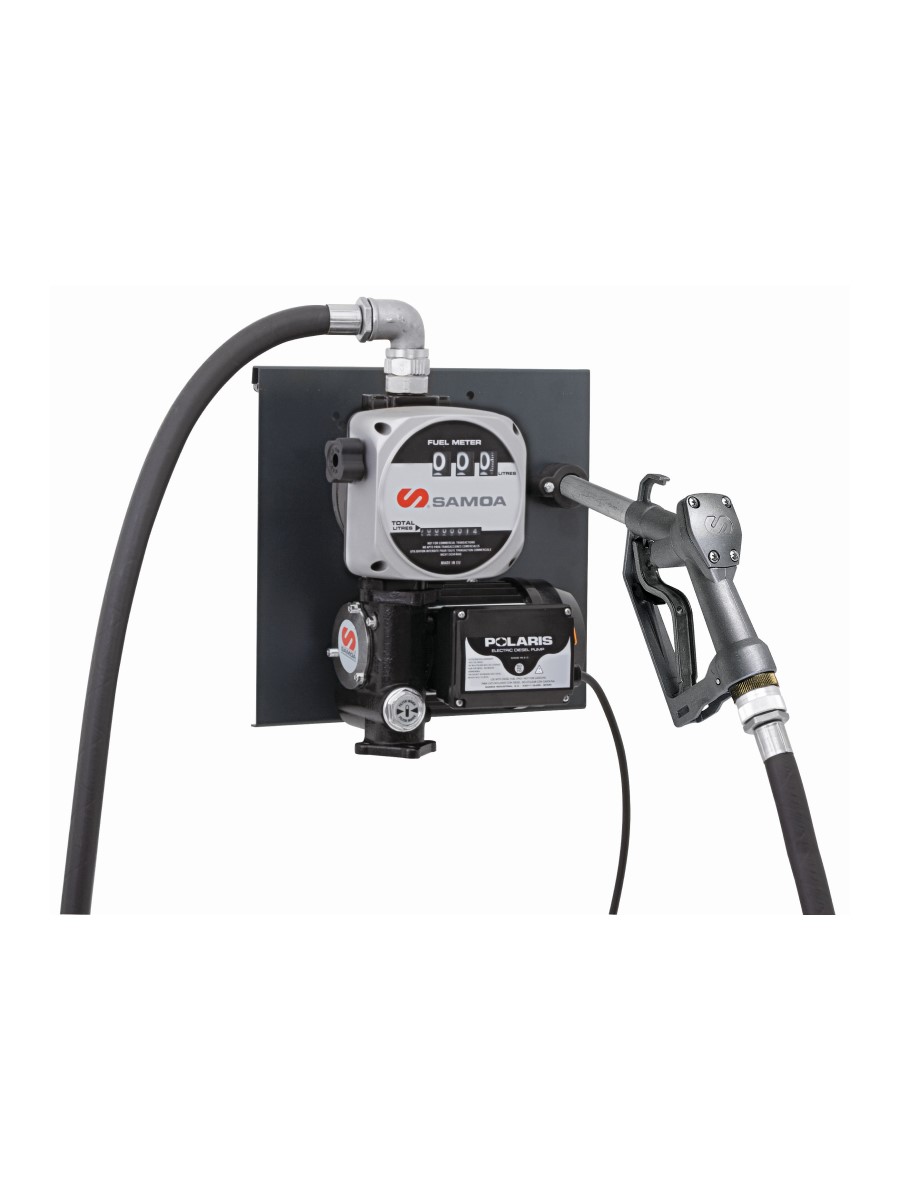 Насос POLARIS производительностью 70 л/мин с крепежной пластиной для монтажа на стену или бак. Комплект включает насос для перекачки дизельного топлива 230 В~, 50 Гц с кабелем 1,8 м, крепежную пластину, подающий шланг 4 м, алюминиевую насадку и трехразрядный счетчик (680300) с шарнирным угловым патрубком 90º, который прифланцовывается к насосу. Соединение на входе жидкости 1" BSP (F). Счетчик предназначен только для некоммерческого применения.