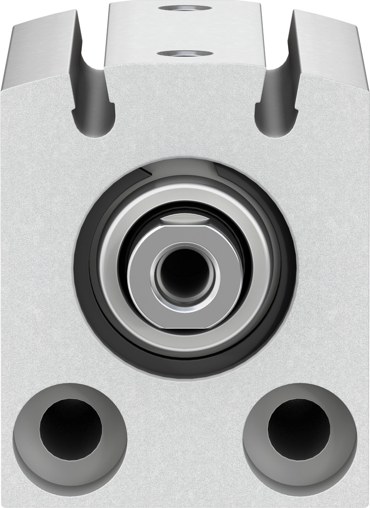 Цилиндры двустороннего действия имеют два отверстия для подвода сжатого воздуха – для выдвижения и втягивания штока соответственно.