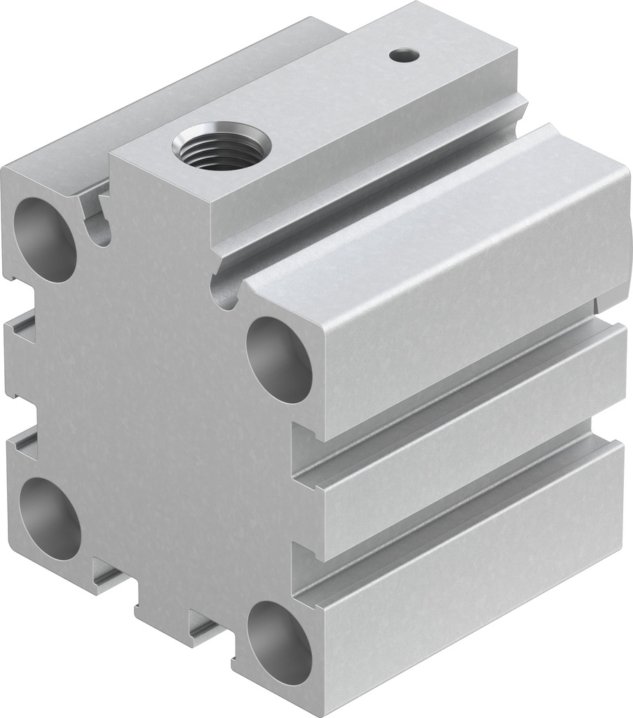 Цилиндры одностороннего действия имеют только одно отверстие пневматического подключения. Движение под действием сжатого воздуха осуществляется в одну сторону, возврат осуществляется при помощи пружины. Таким образом, для управления таким цилиндром требуется всего один пневматический сигнал.