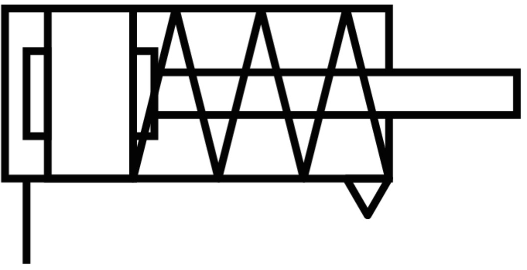 Пневмоцилиндр с пружиной в штоковой полости (на изображении выше) и нормально втянутым штоком называется толкающим. При расположении пружины в противоположной, поршневой полости, шток будет нормально выдвинутым, а пневмоцилиндр – тянущим.