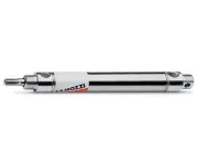 Цилиндры одностороннего действия имеют только одно отверстие пневматического подключения. Движение под действием сжатого воздуха осуществляется в одну сторону, возврат осуществляется при помощи пружины. Таким образом, для управления таким цилиндром требуется всего один пневматический сигнал.