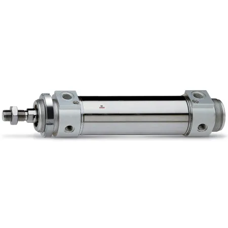 Цилиндры двустороннего действия имеют два отверстия для подвода сжатого воздуха – для выдвижения и втягивания штока соответственно.