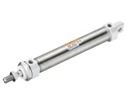 Цилиндры одностороннего действия имеют только одно отверстие пневматического подключения. Движение под действием сжатого воздуха осуществляется в одну сторону, возврат осуществляется при помощи пружины. Таким образом, для управления таким цилиндром требуется всего один пневматический сигнал.