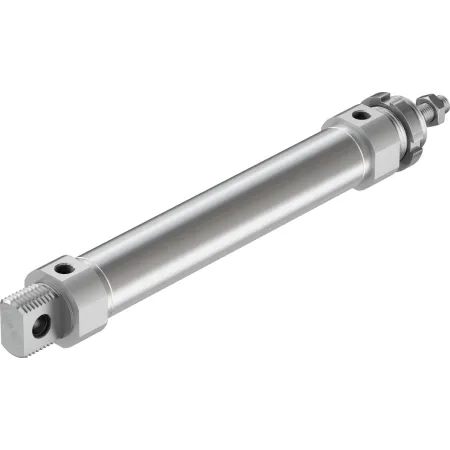 Цилиндры одностороннего действия имеют только одно отверстие пневматического подключения. Движение под действием сжатого воздуха осуществляется в одну сторону, возврат осуществляется при помощи пружины. Таким образом, для управления таким цилиндром требуется всего один пневматический сигнал.