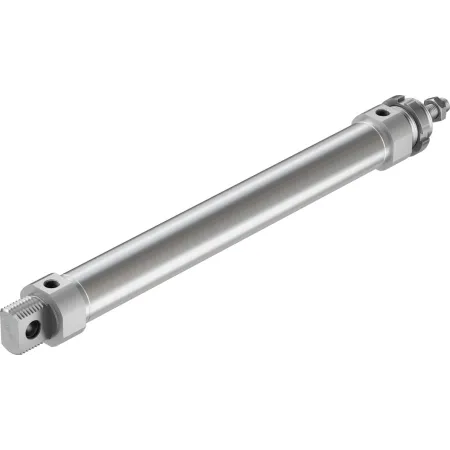 Цилиндры одностороннего действия имеют только одно отверстие пневматического подключения. Движение под действием сжатого воздуха осуществляется в одну сторону, возврат осуществляется при помощи пружины. Таким образом, для управления таким цилиндром требуется всего один пневматический сигнал.