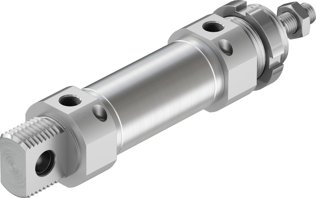 Цилиндры двустороннего действия имеют два отверстия для подвода сжатого воздуха – для выдвижения и втягивания штока соответственно.