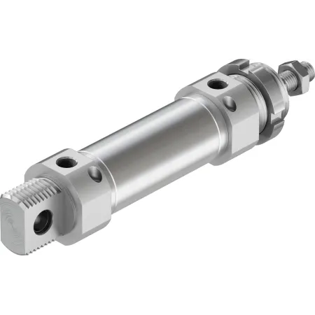 Цилиндры одностороннего действия имеют только одно отверстие пневматического подключения. Движение под действием сжатого воздуха осуществляется в одну сторону, возврат осуществляется при помощи пружины. Таким образом, для управления таким цилиндром требуется всего один пневматический сигнал.