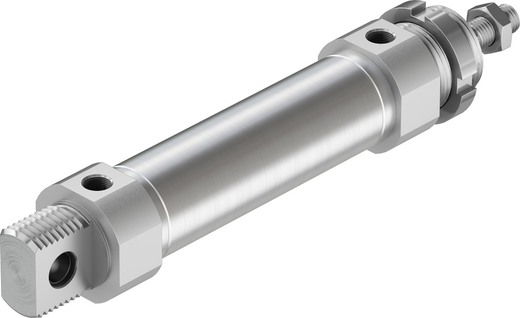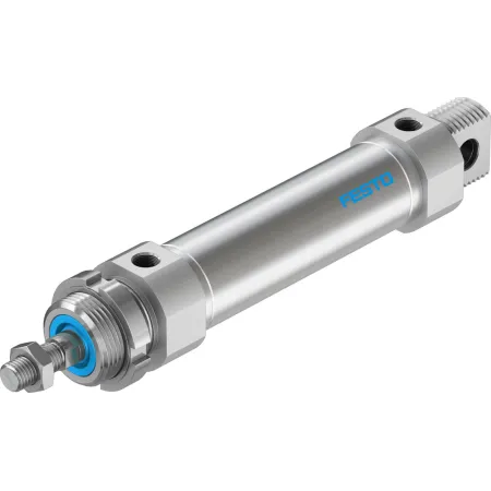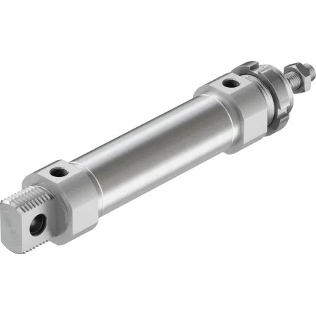Цилиндры одностороннего действия имеют только одно отверстие пневматического подключения. Движение под действием сжатого воздуха осуществляется в одну сторону, возврат осуществляется при помощи пружины. Таким образом, для управления таким цилиндром требуется всего один пневматический сигнал.