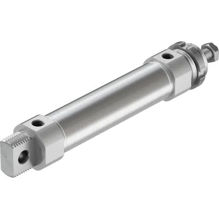 Цилиндры одностороннего действия имеют только одно отверстие пневматического подключения. Движение под действием сжатого воздуха осуществляется в одну сторону, возврат осуществляется при помощи пружины. Таким образом, для управления таким цилиндром требуется всего один пневматический сигнал.