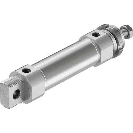 Цилиндры одностороннего действия имеют только одно отверстие пневматического подключения. Движение под действием сжатого воздуха осуществляется в одну сторону, возврат осуществляется при помощи пружины. Таким образом, для управления таким цилиндром требуется всего один пневматический сигнал.