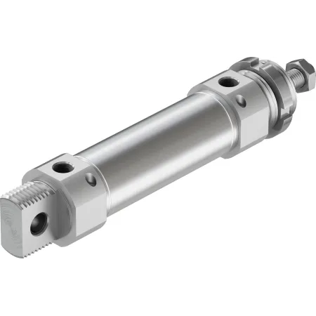 Цилиндры одностороннего действия имеют только одно отверстие пневматического подключения. Движение под действием сжатого воздуха осуществляется в одну сторону, возврат осуществляется при помощи пружины. Таким образом, для управления таким цилиндром требуется всего один пневматический сигнал.