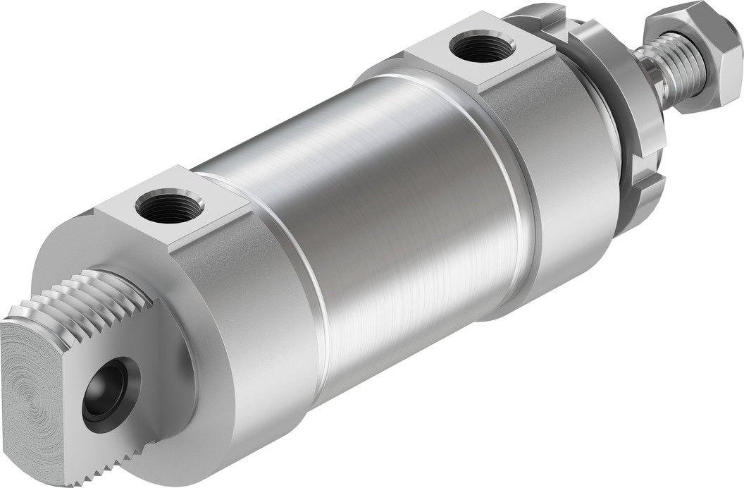 Цилиндры двустороннего действия имеют два отверстия для подвода сжатого воздуха – для выдвижения и втягивания штока соответственно.