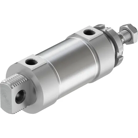 Цилиндры одностороннего действия имеют только одно отверстие пневматического подключения. Движение под действием сжатого воздуха осуществляется в одну сторону, возврат осуществляется при помощи пружины. Таким образом, для управления таким цилиндром требуется всего один пневматический сигнал.
