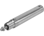 Цилиндры одностороннего действия имеют только одно отверстие пневматического подключения. Движение под действием сжатого воздуха осуществляется в одну сторону, возврат осуществляется при помощи пружины. Таким образом, для управления таким цилиндром требуется всего один пневматический сигнал.