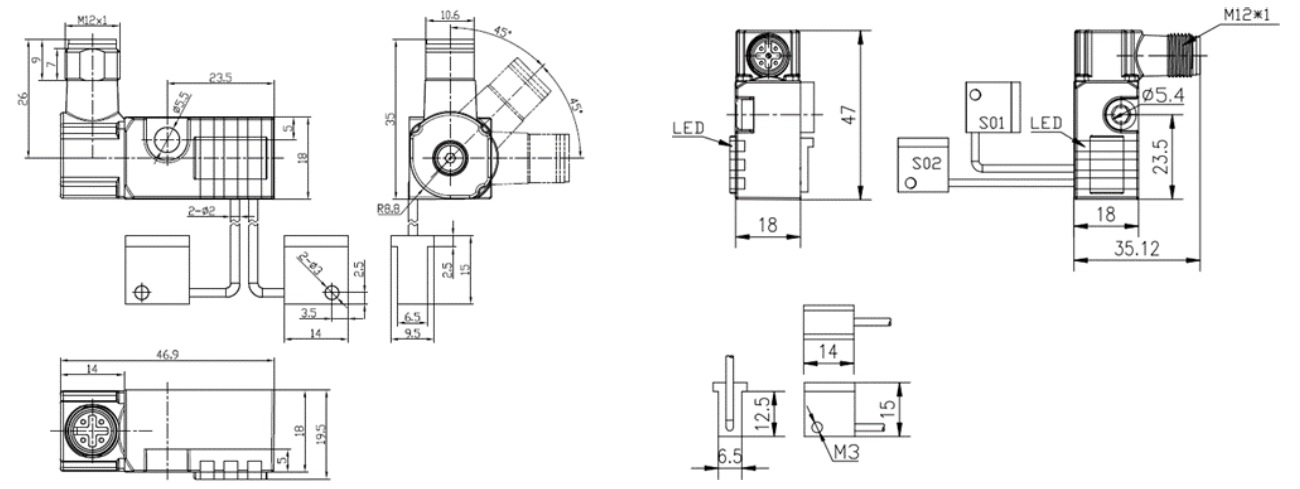 - Головку разъема можно проворачивать на 0°, 45°, 90° для гибкого подключения проводов