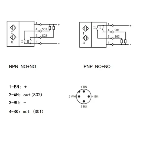 - Длина кабеля и расстояние срабатывания S01 и S02 могут быть кастомизированы индивидуально