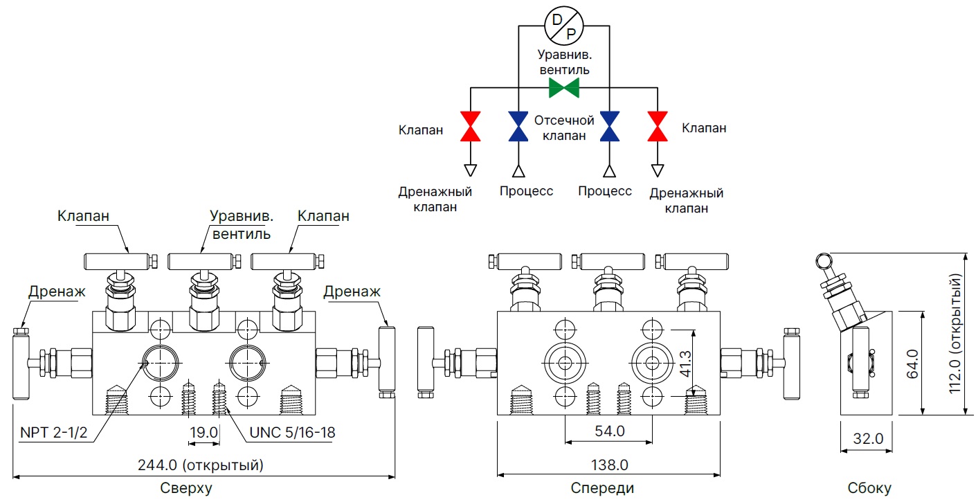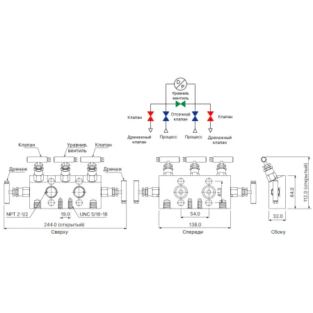 Выхлоп/сброс/дренаж (каналы 3/R, 5/S)