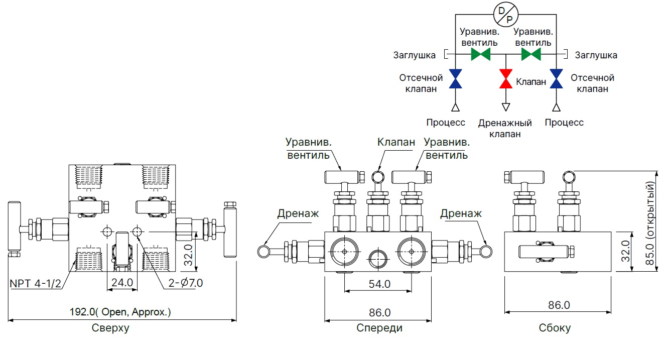 Выхлоп/сброс/дренаж (каналы 3/R, 5/S)
