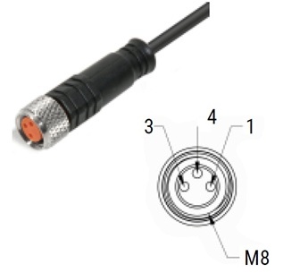 Стандарт: EN 61076-2-101 • Электрическое подключение: разъём M8x1 3-пин мама, кабель • Длина кабеля: 5м