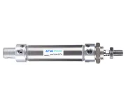 Цилиндры одностороннего действия имеют только одно отверстие пневматического подключения. Движение под действием сжатого воздуха осуществляется в одну сторону, возврат осуществляется при помощи пружины. Таким образом, для управления таким цилиндром требуется всего один пневматический сигнал.