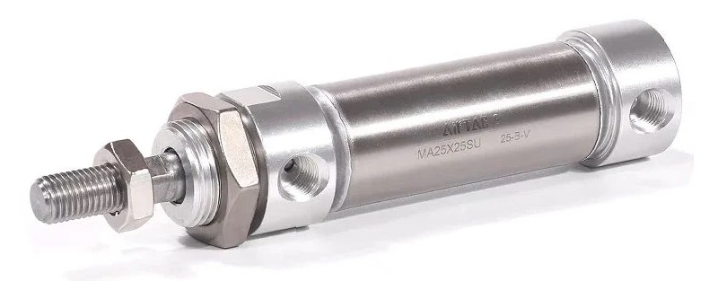 Цилиндры двустороннего действия имеют два отверстия для подвода сжатого воздуха – для выдвижения и втягивания штока соответственно.