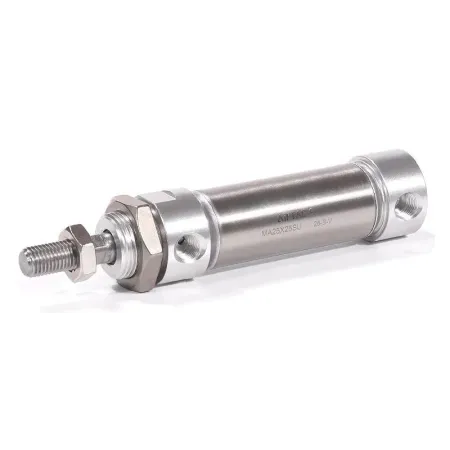 Цилиндры одностороннего действия имеют только одно отверстие пневматического подключения. Движение под действием сжатого воздуха осуществляется в одну сторону, возврат осуществляется при помощи пружины. Таким образом, для управления таким цилиндром требуется всего один пневматический сигнал.