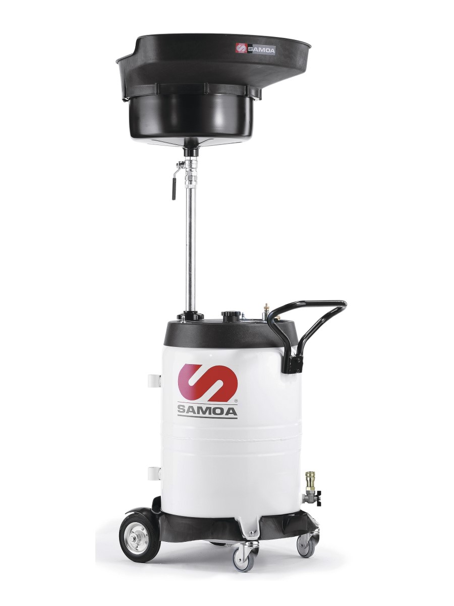 Мобильный маслосборник объемом 100 литров, слив дистанционным насосом. Опорожнение с помощью подключения установки к настенному насосу через гидравлическое соединение, расположенное в нижней части емкости. Предназначен для сбора самотеком моторного и трансмиссионного масла, а также других неагрессивных автомобильных жидкостей класса A-III. Маслосборники могут стоять под подъемниками.