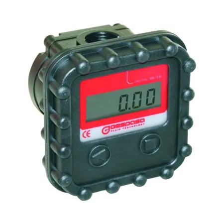 Электронный счетчик для масла MGE-40 Gespasa, учитывающий количество переданного горючего с погрешностью не более 0,5%. Это устройство применяется для контроля не только масла, но и дизельного топлива и смазочных материалов вязкостью до SAE-140. Прибор корректно работает в составе топливораздаточного оборудования с невысокой производительностью: 2 -40 л/мин для перекачки смазочных материалов, 2-50 л/мин для перекачки дизельного топлива.
